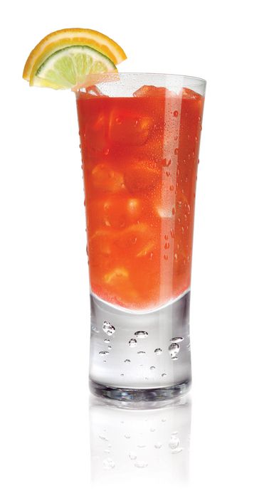 Añadir los cubitos de hielo que creamos convenientes al vaso alto y verter el campari. Para finalizar rellenar el vaso con zumo de naranja y con ayuda de una cucharilla de coctel removerlo todo.